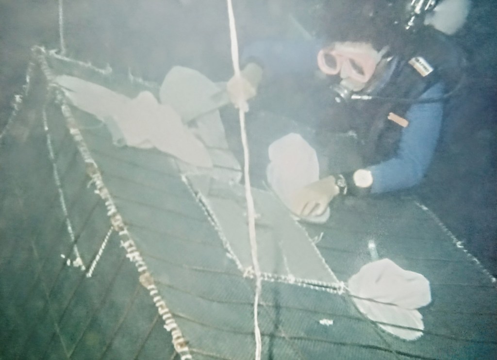 Ze duiken op een modderachtige zandbank met duizenden schelpen. In de hoop dat er vissen in zitten verzamelen ze er een aantal. Na een half uur op dertig meter decomprimeren ze, samen met de schelpen, op zes en drie meter.